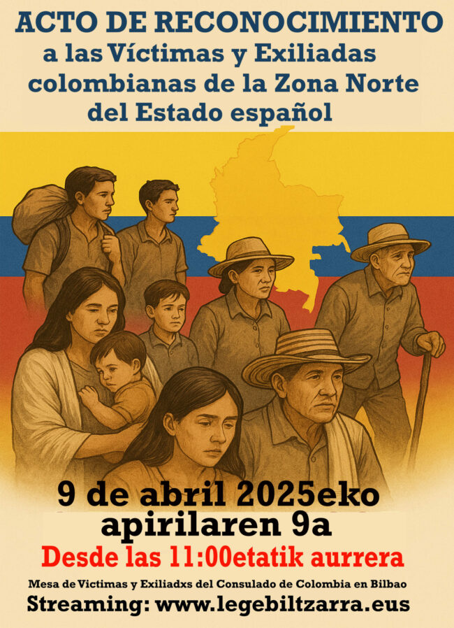 Manifiesto de las victimas y exiliadas políticas de Colombia en la Zona Norte del Estado Español Hoy 09 de abril de 2025 las víctimas y exiliadas políticas que conformamos la…