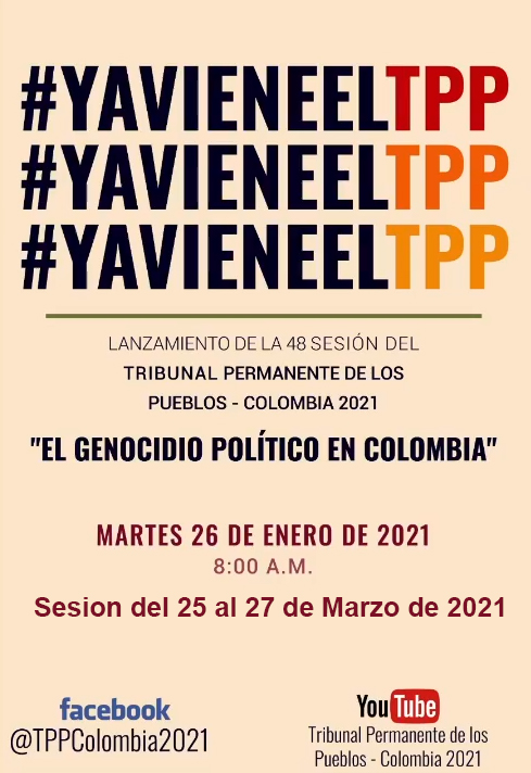 Ya viene el Tribunal Permanente de los Pueblos para Colombia del 25 al 27 de Marzo de 2021