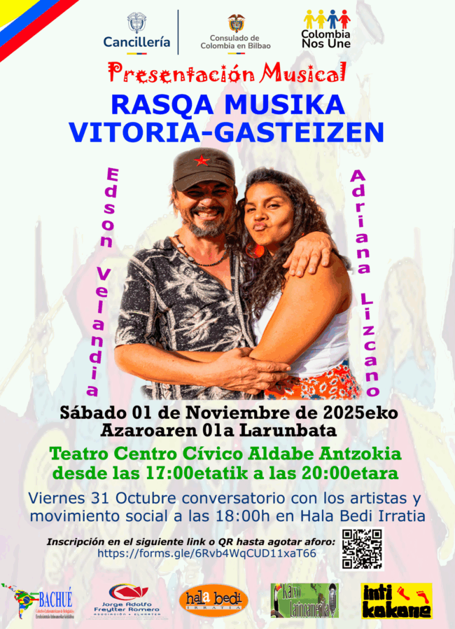 Este fin de mes de octubre en el marco de la Colombianidad de 2025 estarán los artistas colombianos EDSON VELANDIA Y ADRIANA LIZCANO visitando Vitoria-Gasteiz conversando con…